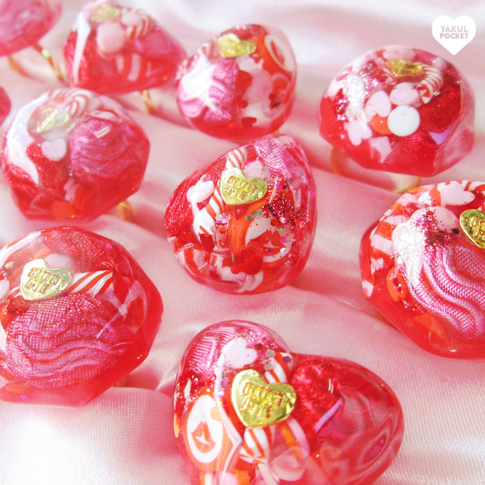赤とピンクをメインカラーにとびきりスイートに可愛くぎっしり詰め込んだキャンディに大粒ホログラムがギラリとアクセント