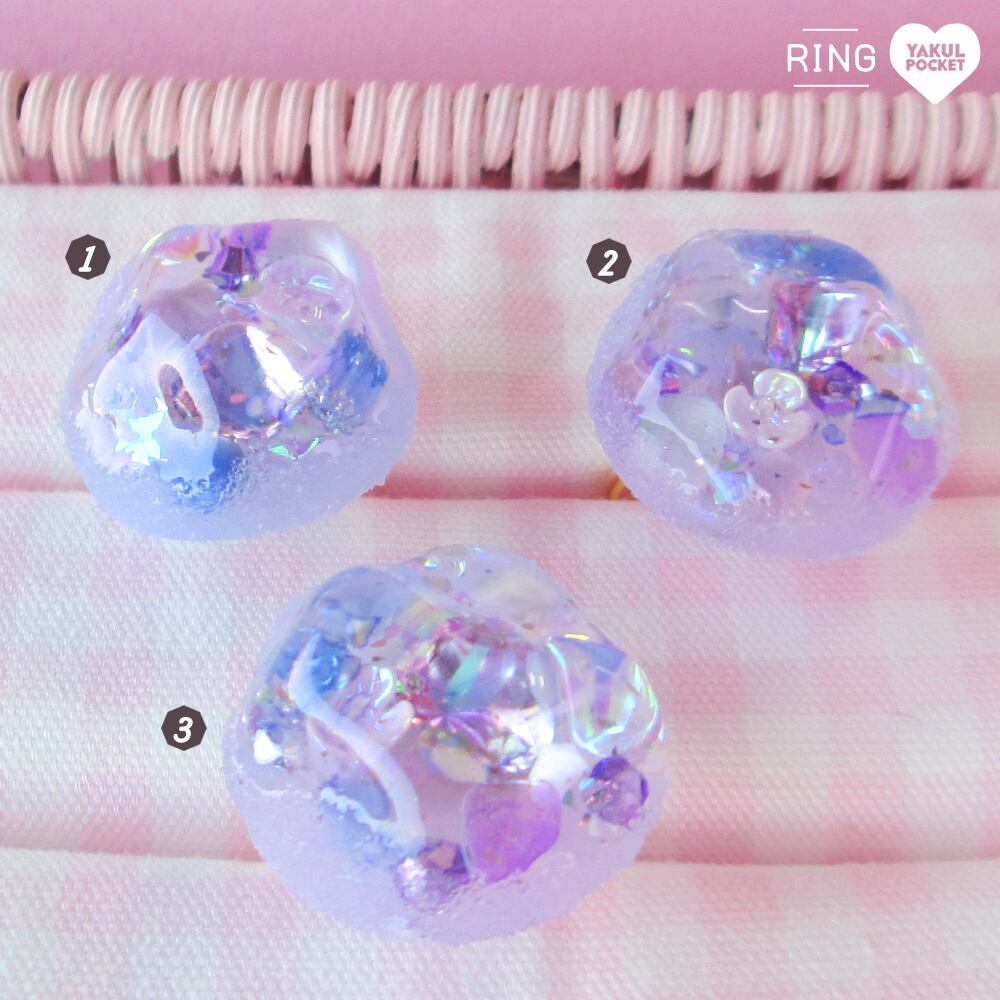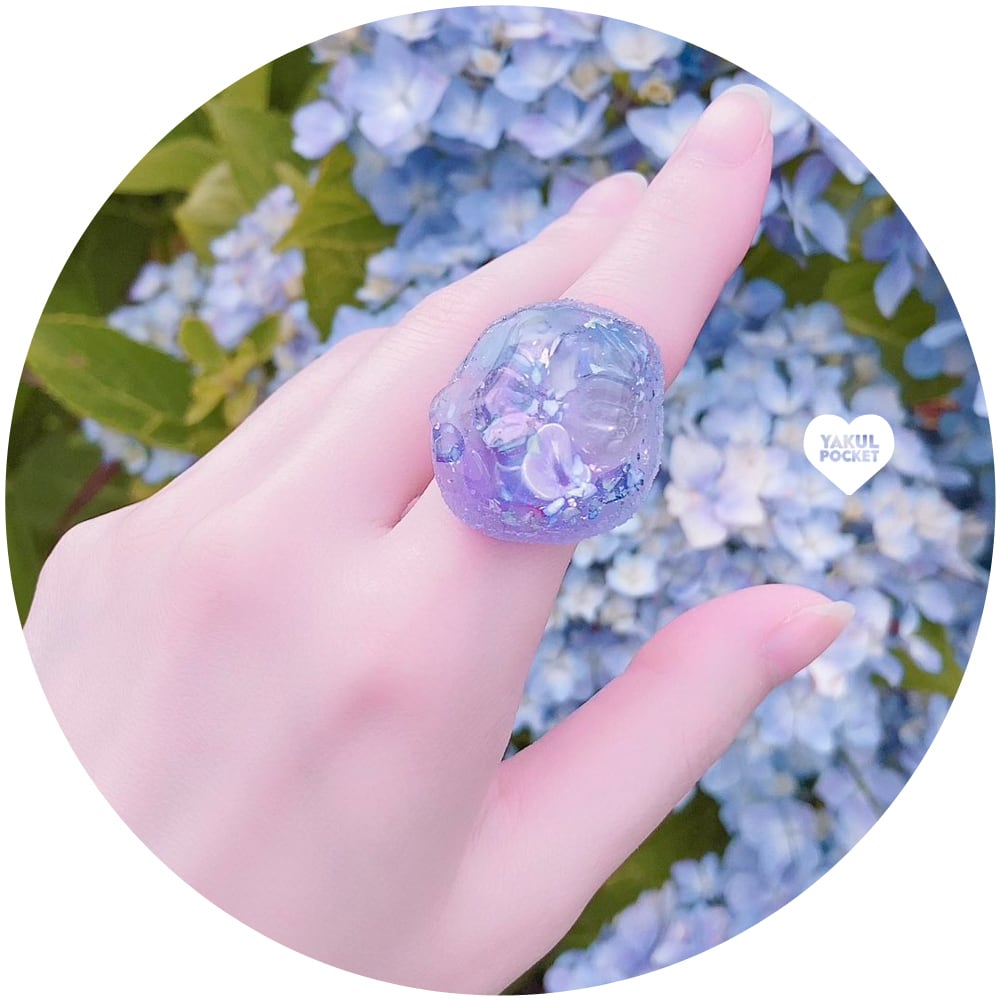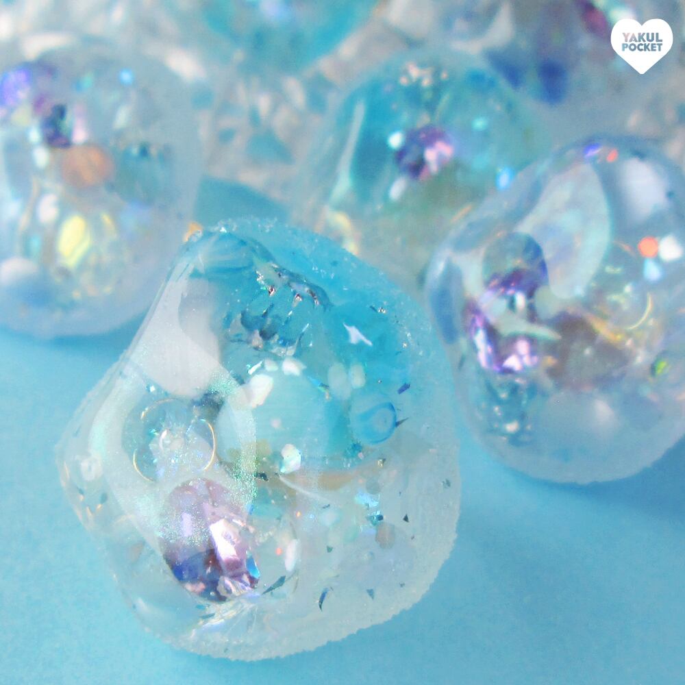 水面加工をした寒天の中で花弁やビジューがキラキラととろけるように反射します