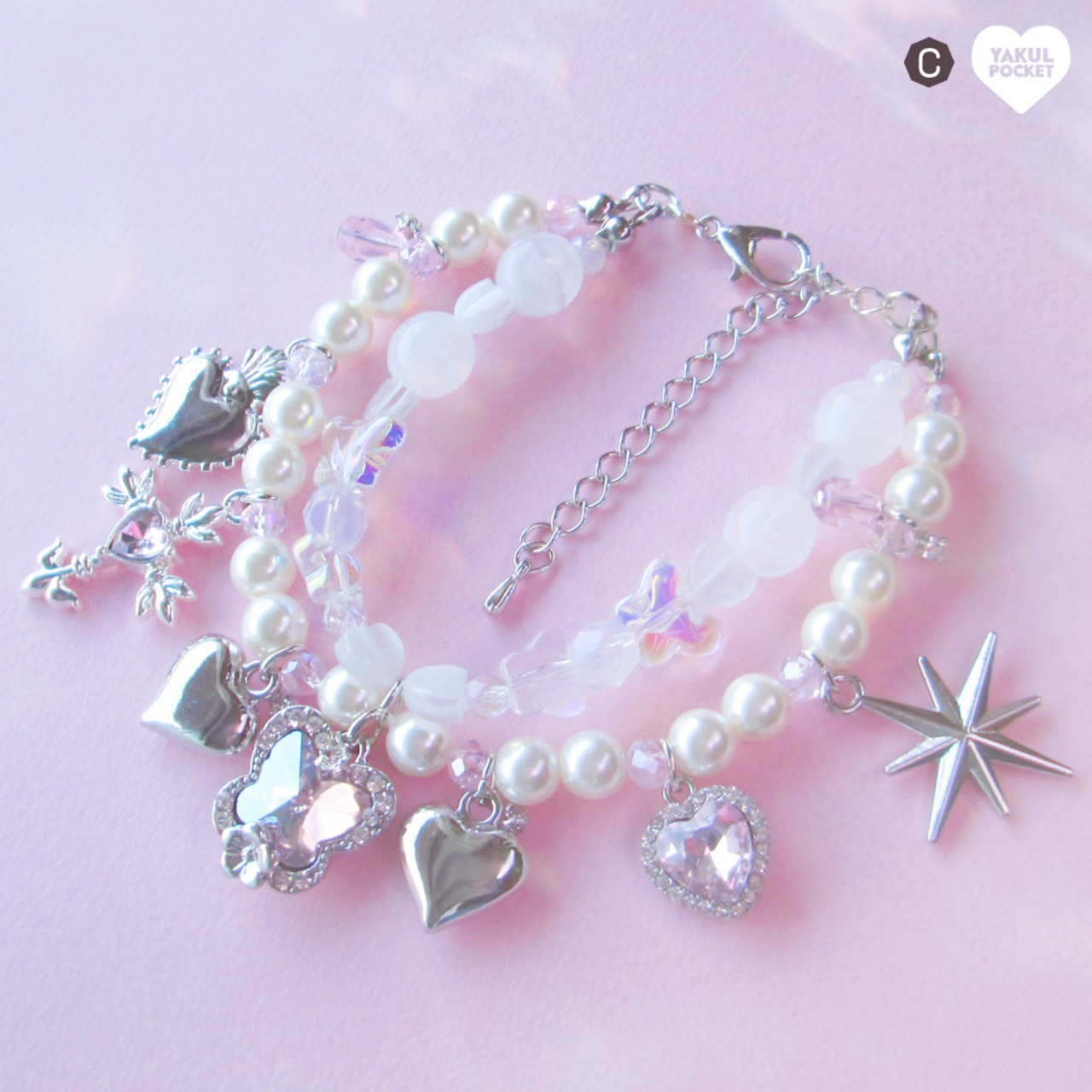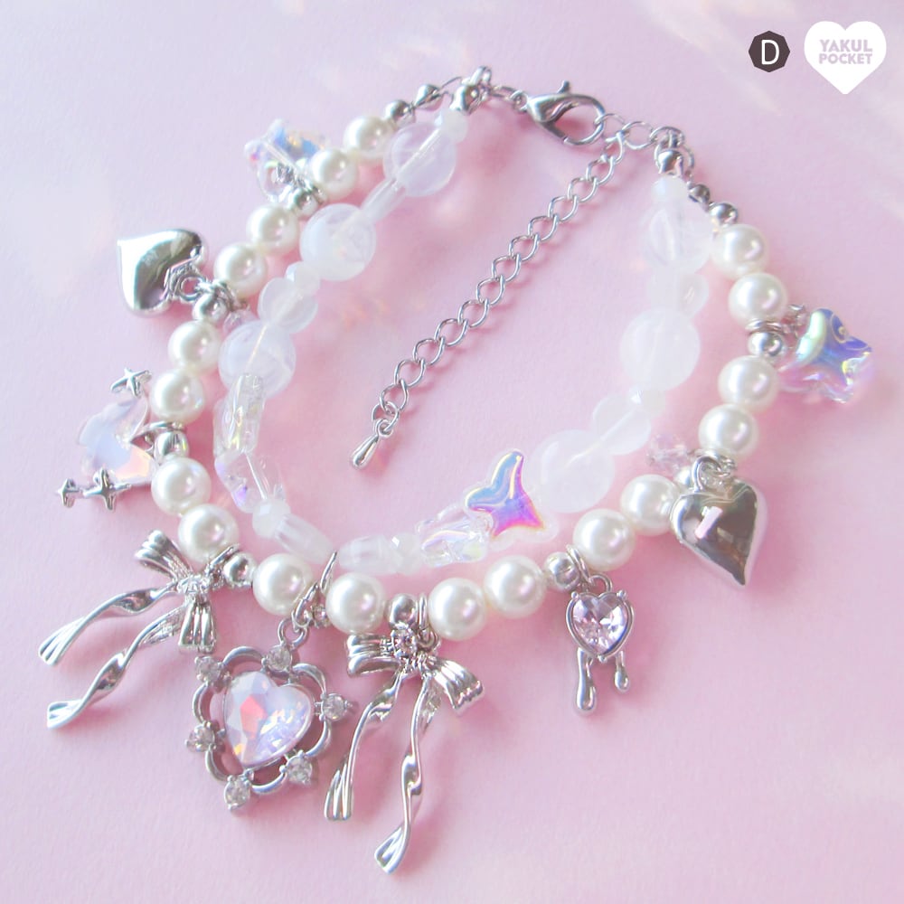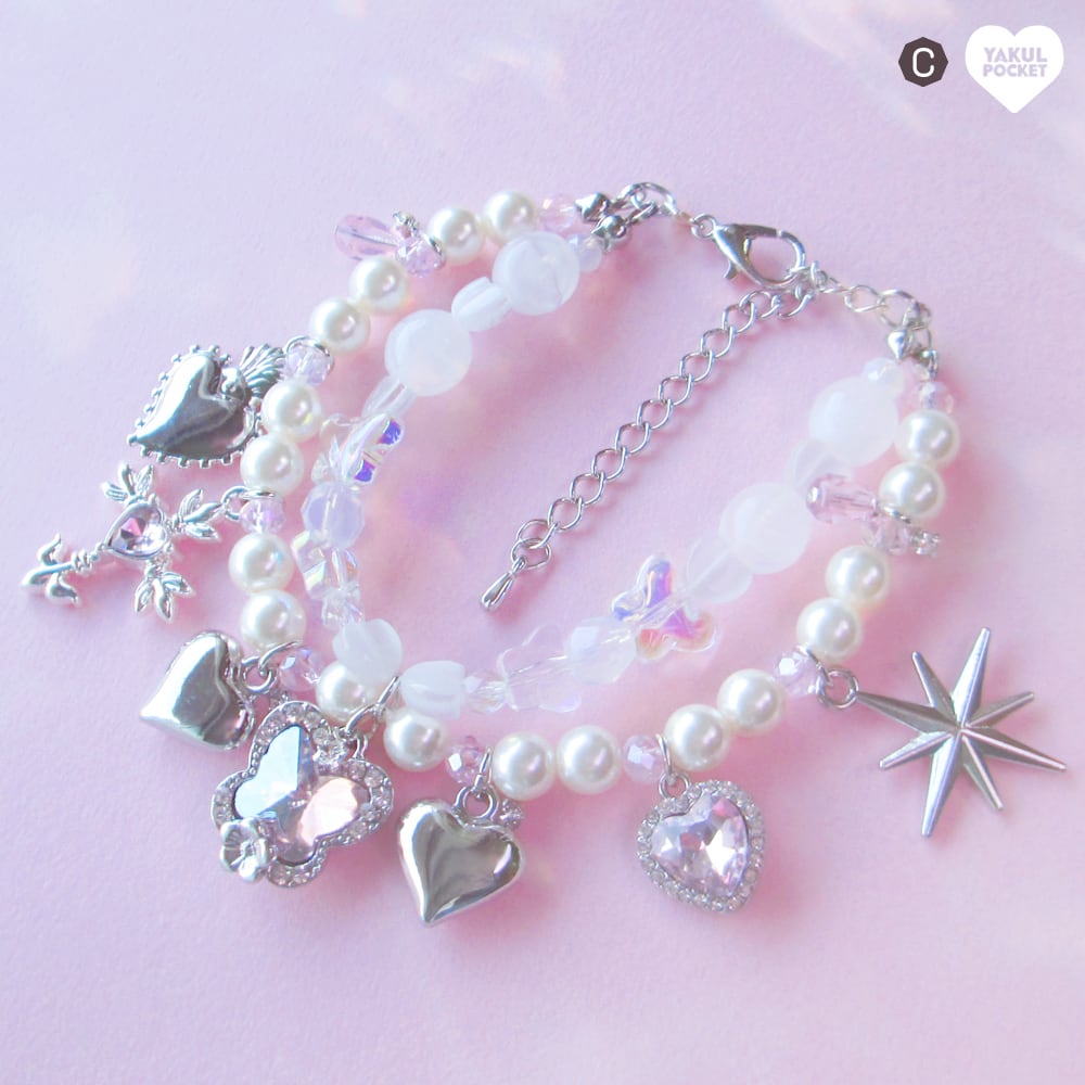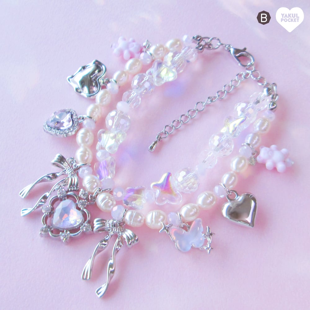パールにハートにキャッツアイ シルバーに煌めくチャームはたっぷりふんだんに